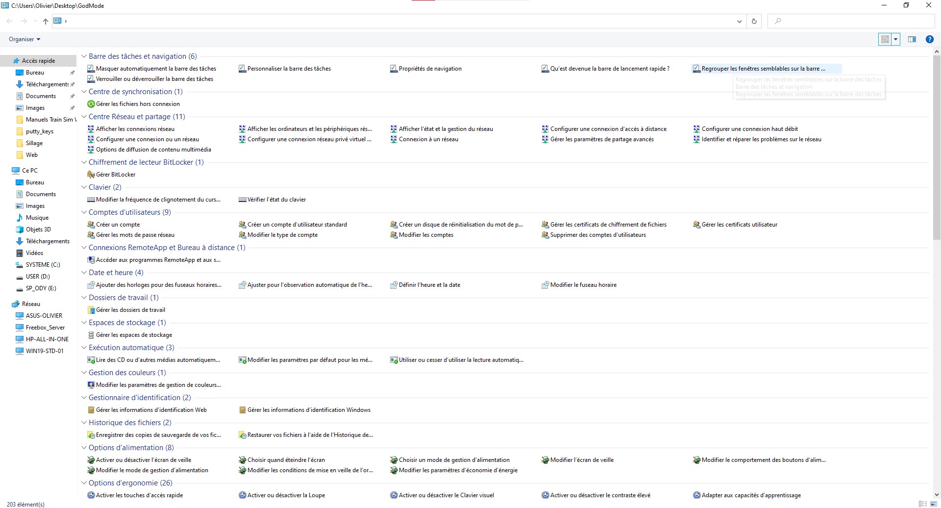 Grâce au GodMode, vous accédez instantanément à l’ensemble des fonctionnalités du Panneau de configuration et des réglages du PC. Pour activer ce mode :