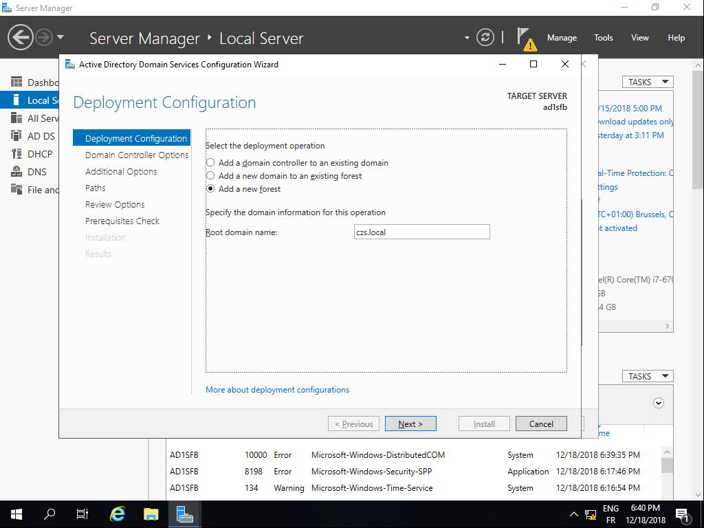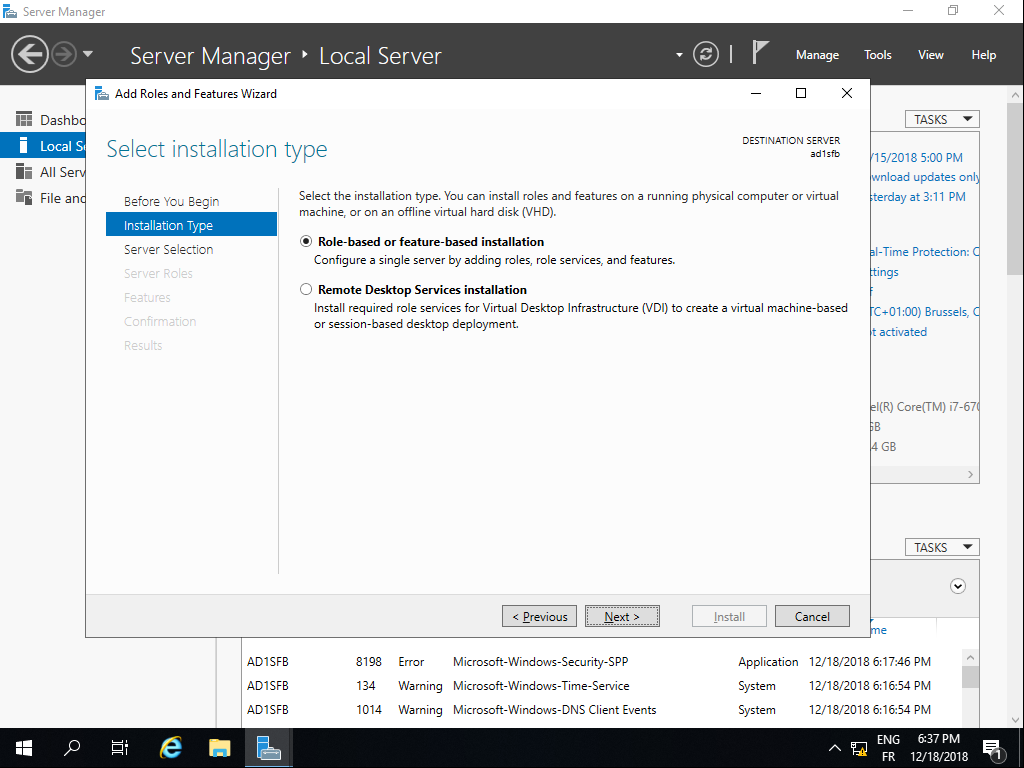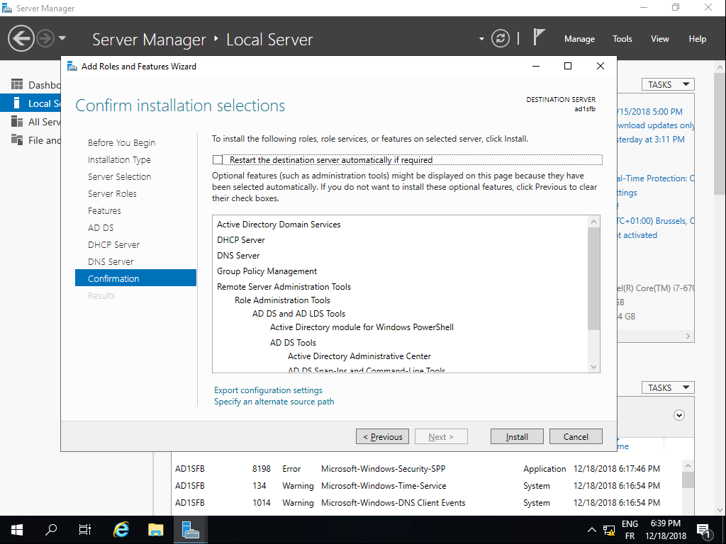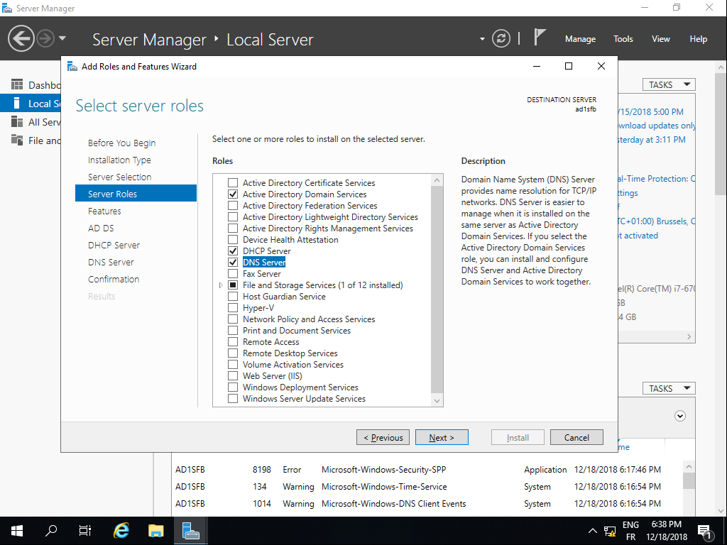 Pour aller plus loin, j’ajoute aussi le serveur DNS. Si vous créez un nouveau réseau/SI, alors vous pouvez prendre ce rôle DNS. Toutefois, si vous créez ce nouvel AD dans un réseau déjà existant, alors n’ajoutez pas le rôle DNS.